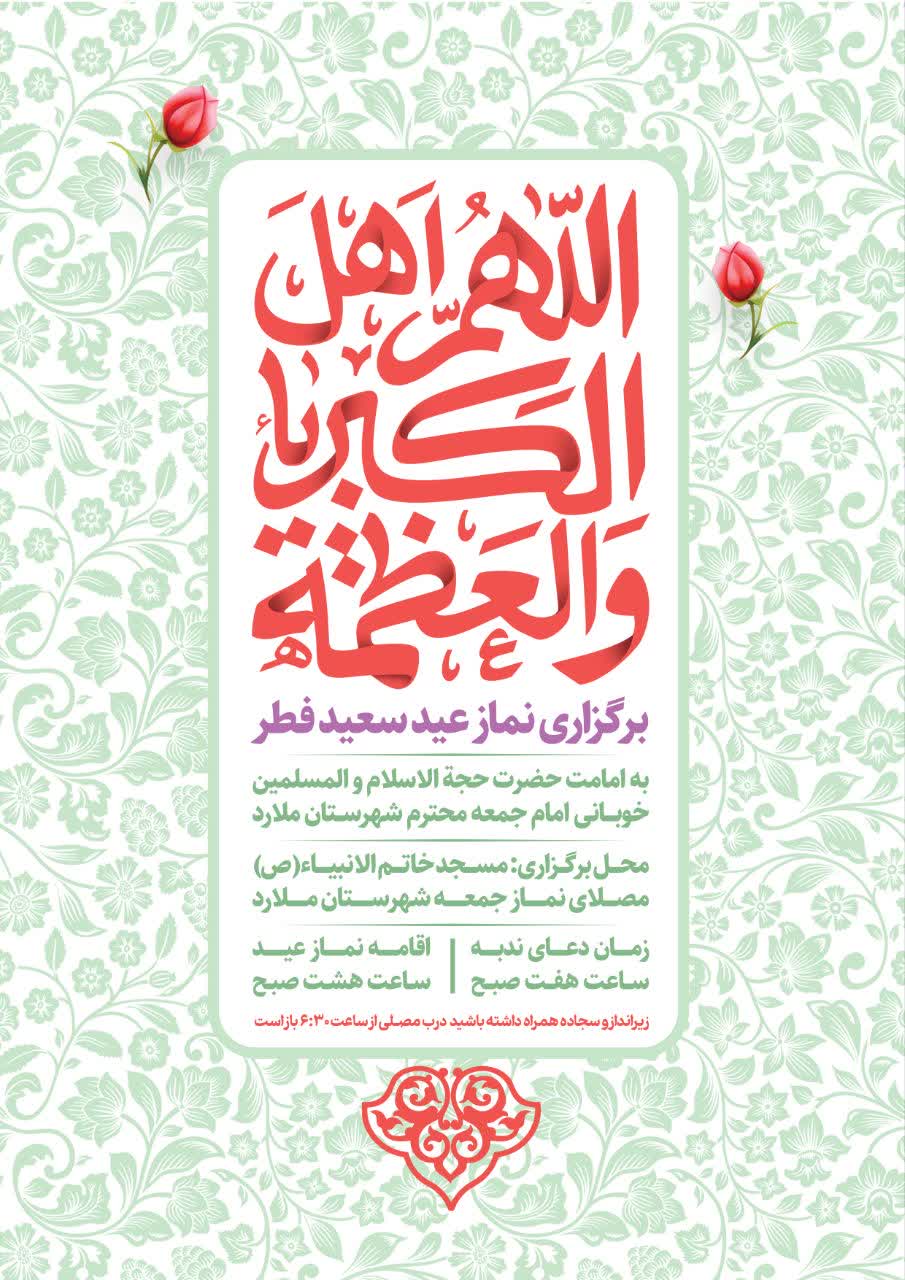 نماز عید سعید فطر در شهر ملارد و بخش صفادشت برگزار خواهد شد.
