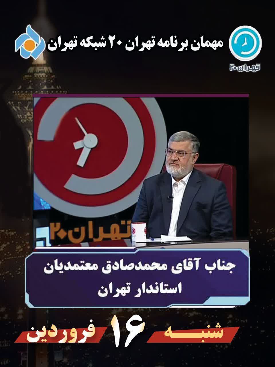 استاندار تهران امشب در برنامه تهران ۲۰ حضور پیدا خواهد کرد.