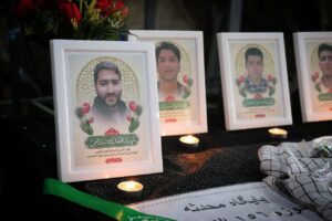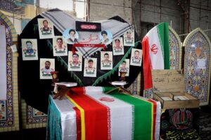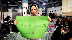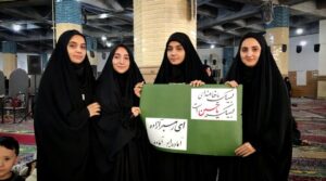 بانوان شهرستان قدس با در دست داشتن شعارهایی حمایت خود را از کشور خود حملیت کردند.